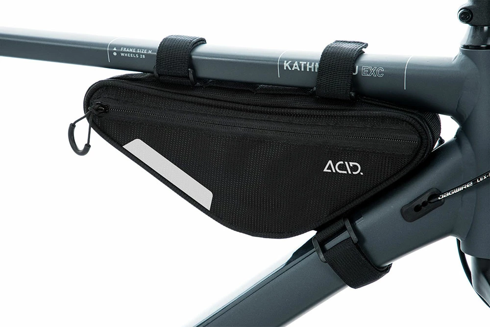 La sacoche de cadre ACID CMPT 1, d’une capacité d’un litre, possède toutes les caractéristiques essentielles dont elle a besoin. Le matériau extérieur est exempt de PVC, résistant à l’usure et facile d’entretien. Grâce au système Molle qui l’entoure, elle peut être fixée dans différentes positions à l’aide de sangles et s’adapte de manière flexible au cadre sans compromettre les performances du vélo.