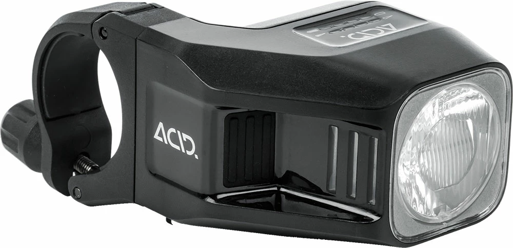 Toujours en route en toute sécurité avec une énorme puissance de rayonnement et du style ! L’éclairage avant ACID LED PRO 80 est homologué par le StVZO, dispose d’une batterie lithium-polymère intégrée et est protégé contre les projections d’eau. Le design asymétrique de la lampe permet de la positionner au centre et lui confère un look épuré sur le vélo. Tu as le choix entre quatre niveaux d’éclairage – selon l’obscurité – et l’indicateur de batterie te dit toujours quelle est la puissance restante dans la lampe.
