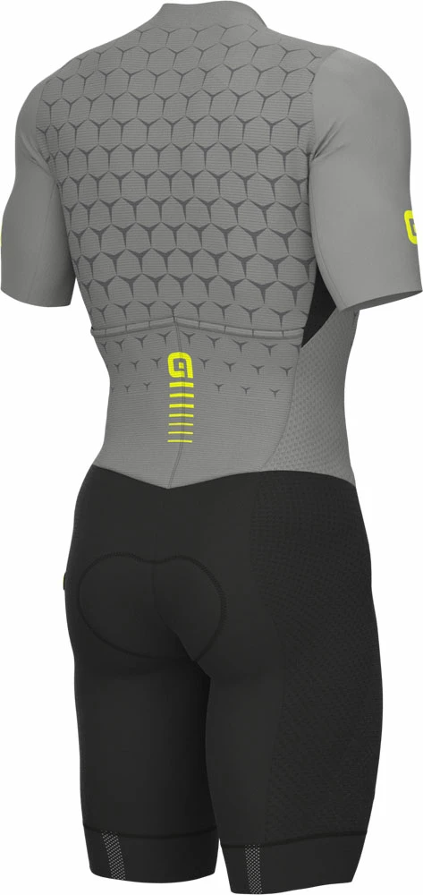 Le maillot une pièce Hive est extrêmement aérodynamique, léger et respirant. La performance est assurée par la combinaison de tissus performants et résistants aux UV. Des détails comme les manches tubulaires découpées au LaserCut, le long zip frontal et le pantalon haut de gamme connecté complètent ce vêtement.