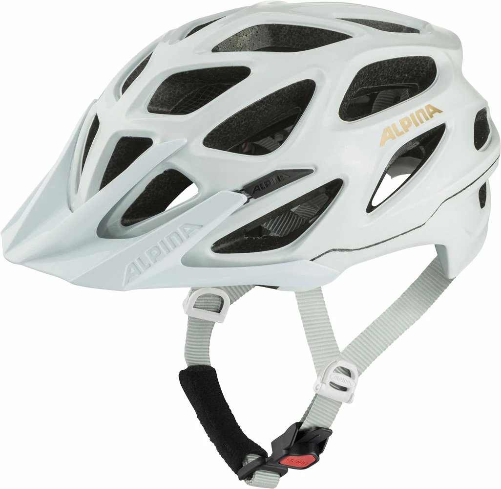 Testée des centaines de milliers de fois et utilisée dans tous les casques de vélo Alpina : la boucle de harnais familière avec bouton-poussoir rouge et détente automatique à plusieurs niveaux. Ergomatic peut être utilisée d’une seule main – vous pouvez desserrer la sangle en montée, la resserrer en descente – et ne peut pas s’ouvrir en cas de chute.