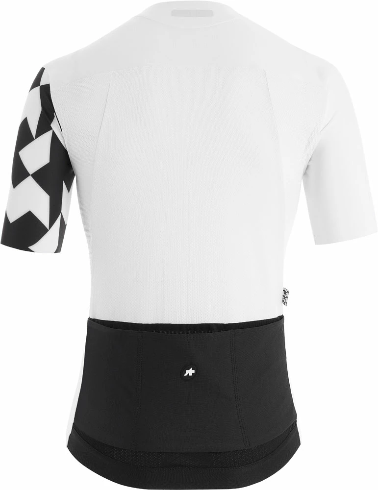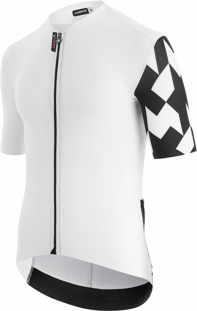 Le matériau principal du maillot est le miniCheck Tex, qui offre la structure typique des maillots ASSOS. Un insert en matériau stabilisateur maintient les poches en place. Le mélange est neutralisant d’odeurs, augmente la respirabilité et améliore l’échange d’air. Les manches et les poches ont été fabriquées à partir du matériau Push Pull pour la superposition des maillots. Ce matériau respirant avec bi-stretch offre stabilité et extensibilité. Les matériaux offrent USF 25 sur le devant, USF 30 sur le dos et USF 50+ sur les manches.