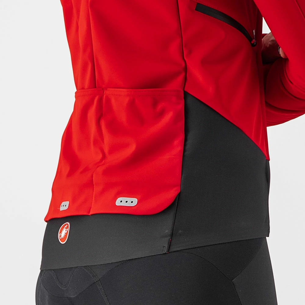 La nouveauté de cette année est un tissu d’isolation 3D plus doux et plus chaud pour une chaleur, une gestion de l’humidité et un ajustement encore meilleurs. Ensuite, Castelli se concentre sur les ouvertures au niveau du cou, des hanches et surtout des poignets. Le col est haut et taillé pour suivre vos mouvements, que vous soyez debout ou en position aérodynamique donnant le super héros de janvier et attaquant vos amis cyclistes. Pour la ceinture, Castelli a créé une couche extensible avec une bande de silicone pour qu’elle soit plate et bloque complètement le vent sans remonter ni s’effilocher. La nouveauté de cette année, ce sont les manchettes à double couche, avec une couche intérieure qui se glisse sous le gant et s’adapte parfaitement au poignet, et une couche extérieure qui passe par-dessus le gant, de sorte que toute pluie s’écoule à l’extérieur du gant et non à l’intérieur.