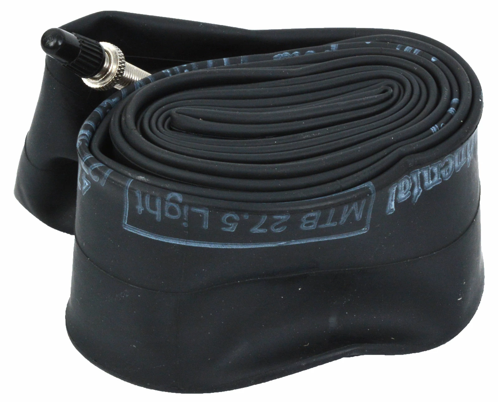 La chambre à air MTB 27.5 Light convainc par son faible poids et sa faible résistance au roulement. Cependant, l’épaisseur réduite de la paroi jusqu’à 0,45 mm augmente également le risque de crevaison par rapport aux chambres à air Standard et Hermetic Plus. En outre, les chambres à air légères doivent être gonflées plus fréquemment. La MTB 27.5 avec valve Sclaverand convient aux vélos de 27,5″.