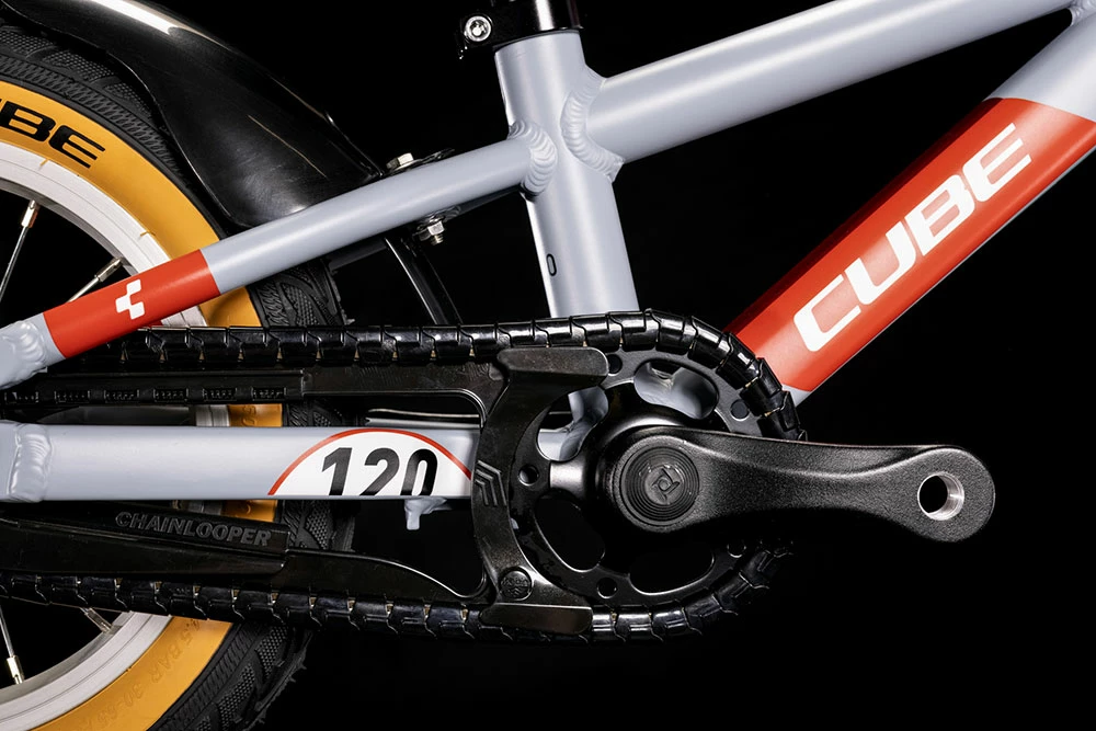 There’s a coaster brake at the rear and a light, smooth rim brake at the front, controlled by a lever that’s specially designed for small hands. Loads of clearance helps build confidence, and the included chainguard keeps your youngster’s legs clear of the transmission. CUBE has even added a rear mudguard for those damper days.