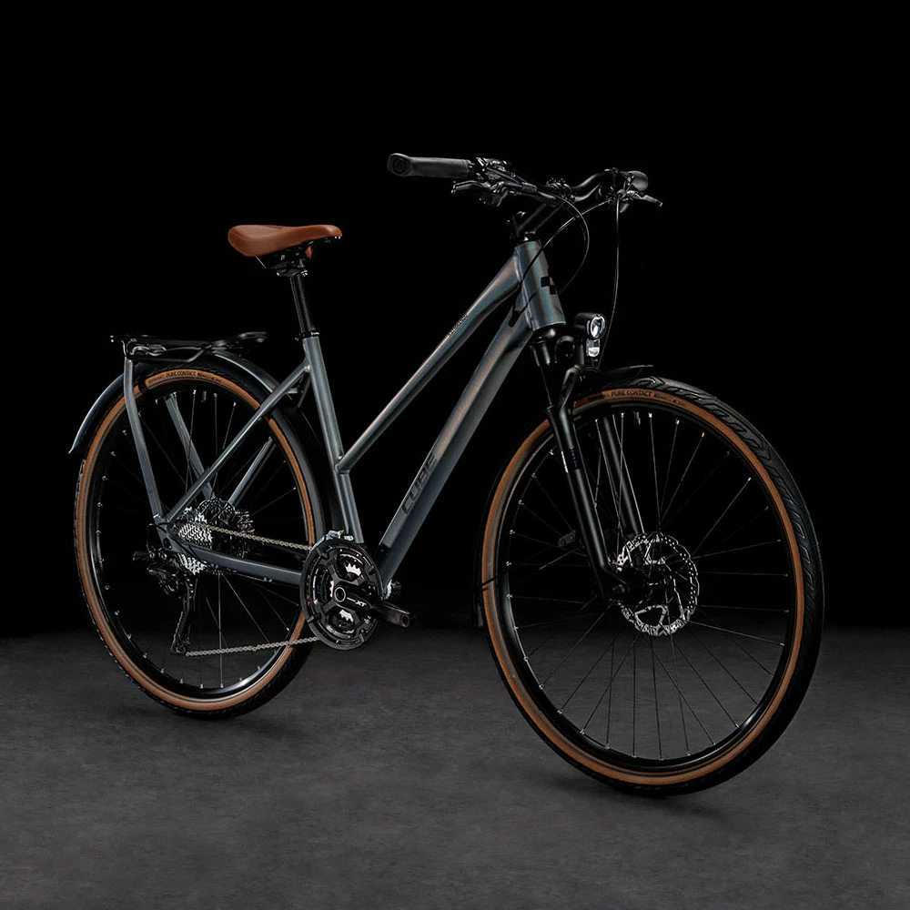 Now you can tread a little more lightly on Mother Earth, thanks to the CUBE Kathmandu SLX’s front light and mudguards made from recycled materials. The elegant frame with Integrated Carrier 3.0 also features a neat, sturdy flat mount kickstand. And, with Shimano XT components and an air-sprung suspension fork, it’s got all you need for low-impact, low-carbon travel.