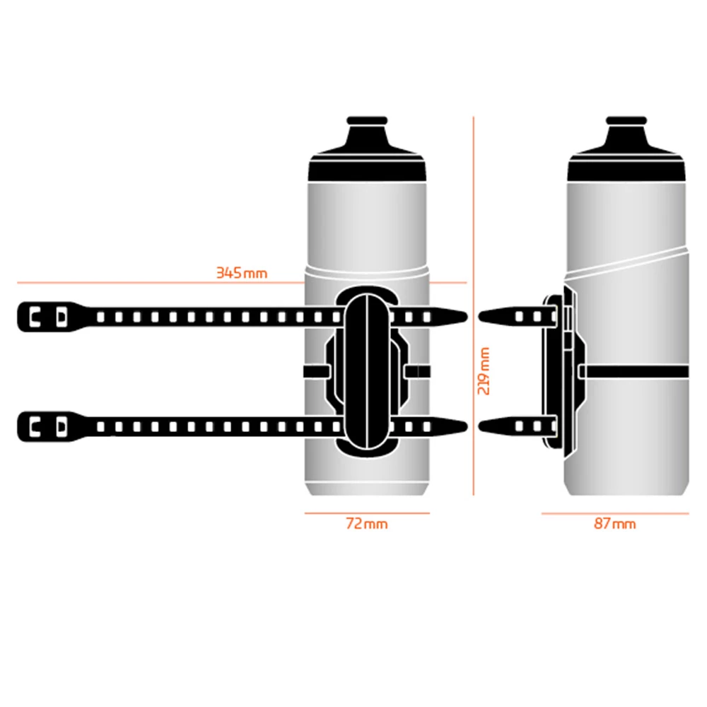 Si le vélo n’a pas du tout d’inserts filetés ou s’ils sont déjà bloqués, le TWIST Bottle 600 est livré avec le TWIST Uni Base. Cet adaptateur universel pour cadre peut être facilement fixé à n’importe quel tuyau d’une largeur de 28 à 62 mm grâce aux larges attaches zippées en TPU. Le dos en caoutchouc lisse du porte-bouteille universel protège votre cadre contre les rayures et aide à maintenir la base uni en place