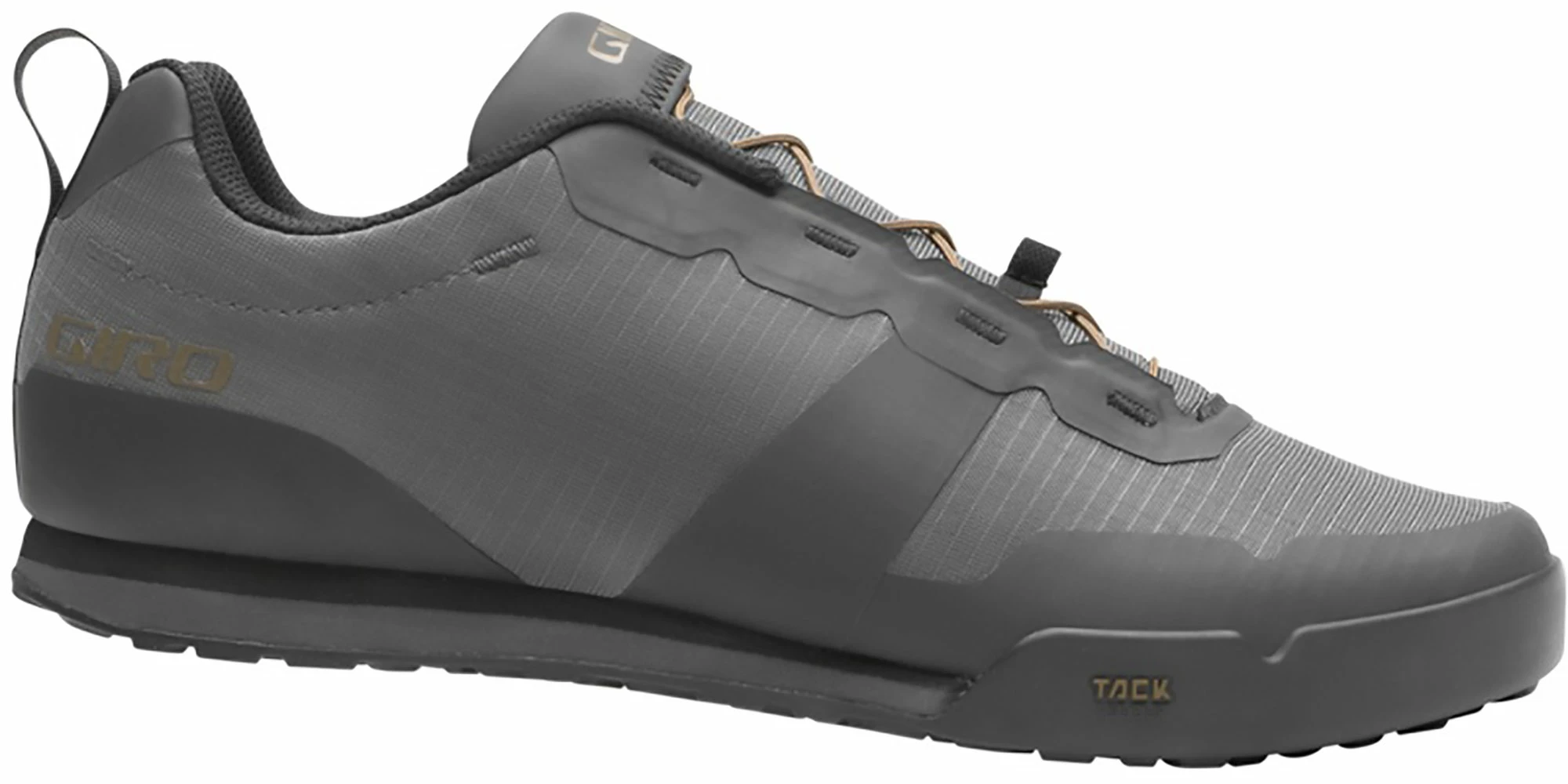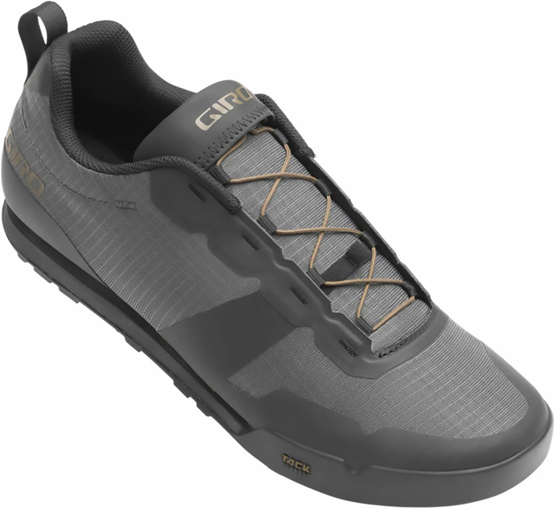 La semelle extérieure en caoutchouc Tack™ s’engage sur les broches des pédales plates et une semelle intermédiaire en EVA à double couche assure le confort en dehors du vélo. Le système de laçage rapide permet d’enfiler et d’enlever rapidement les chaussures et de les adapter facilement à votre pied.