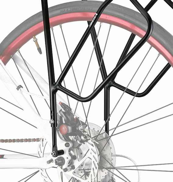 Le porte-vélo PakRak Touring d’Ibera est monté sur le cadre et conçu pour les bagages lourds sur le dessus et sur le côté, avec une charge maximale de 25 kg.