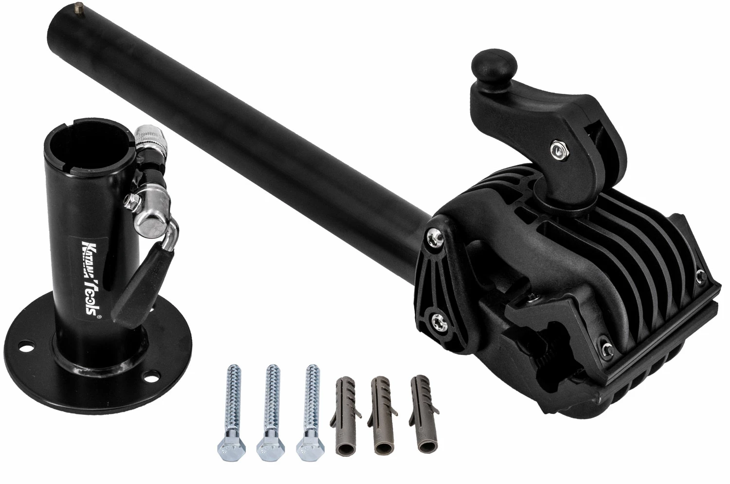 Le support de montage Katana est un complément pratique pour tout atelier de réparation de vélos. Il est conçu pour être fixé au mur et dispose d’un bras librement réglable avec une pince de serrage fiable. Les travaux d’entretien et de montage peuvent ainsi être effectués de manière sûre et précise.