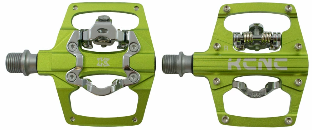 Pédale légère, noble et robuste compatible avec Shimano SPD. Le corps de la pédale est fabriqué en aluminium CNC 6061, l’axe en acier et les fixations en CroMo. Un côté système SPD et un côté plate-forme à 8 broches. Les broches interchangeables du côté de la plate-forme assurent une stabilité optimale, même sur les sentiers les plus sauvages.