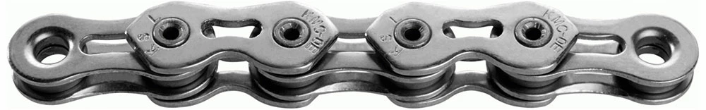 La chaîne singlespeed KMC K1SL Narrow avec surface nickelée pour BMX, système de moyeu à vitesses intégrées et autres systèmes singlespeed nécessitant une transmission directe de la puissance.