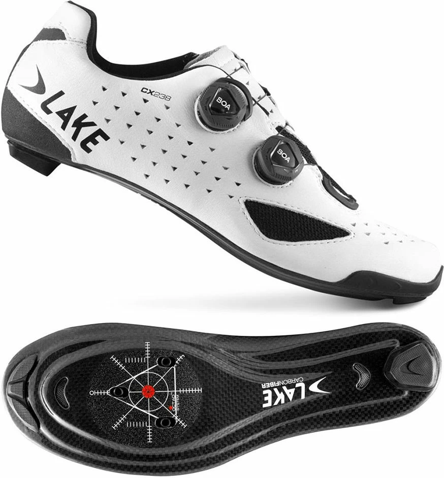 La Lake MX 238 est une chaussure de vélo de course haut de gamme. La tige robuste avec des inserts en cuir Helcor® résistant à l’abrasion épouse parfaitement le pied et offre un maintien sûr grâce à la double fermeture BOA IP1. La semelle ultra-rigide 100% carbone avec bande de roulement en caoutchouc Mountain Race X et forme Competition permet à la chaussure d’être très légère. Cette version X a une coupe légèrement plus large pour les pieds plus larges.