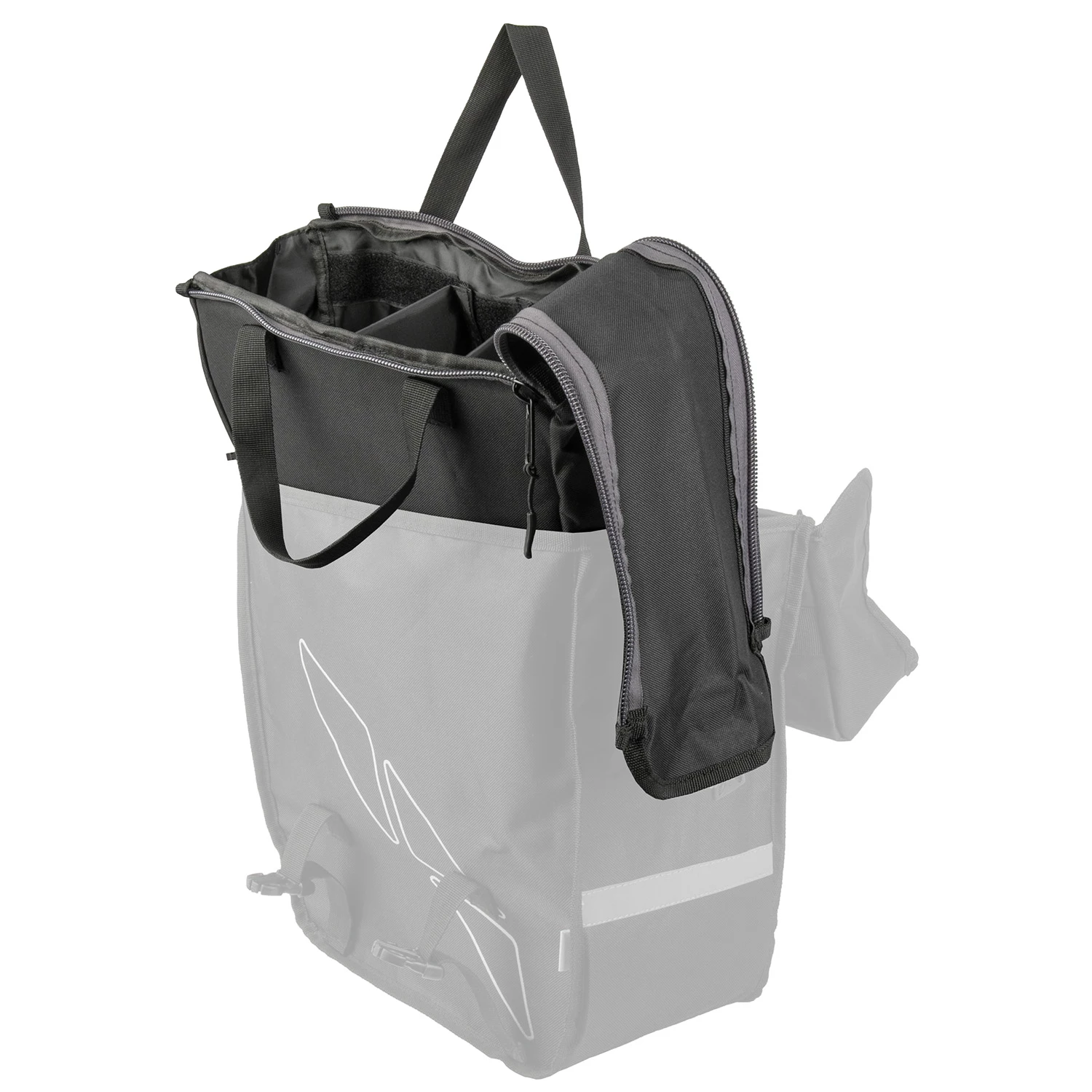 Tout simplement pratique – la sacoche “extérieure” (par exemple la sacoche de porte-bagages M-Wave Amsterdam) peut rester sur le vélo, tandis que la sacoche “intérieure” Amsterdam (“insert”) t’accompagne au travail ou pour faire du shopping.