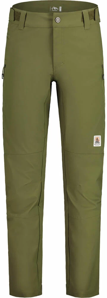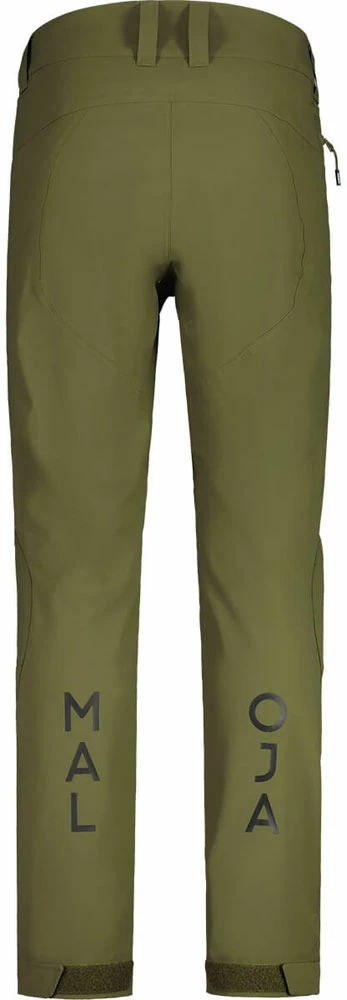 Le matériau Stormshell légèrement extensible du pantalon MomosM. MTB offre une bonne protection contre les intempéries et une chaleur agréable. Il dispose de fermetures éclair latérales pour l’aération, de genoux préformés, d’un réglage de la taille, de passants pour la ceinture et d’ouvertures pour les jambes réglables par velcro. Sur les mollets se trouve une inscription Maloja réfléchissante en deux parties.