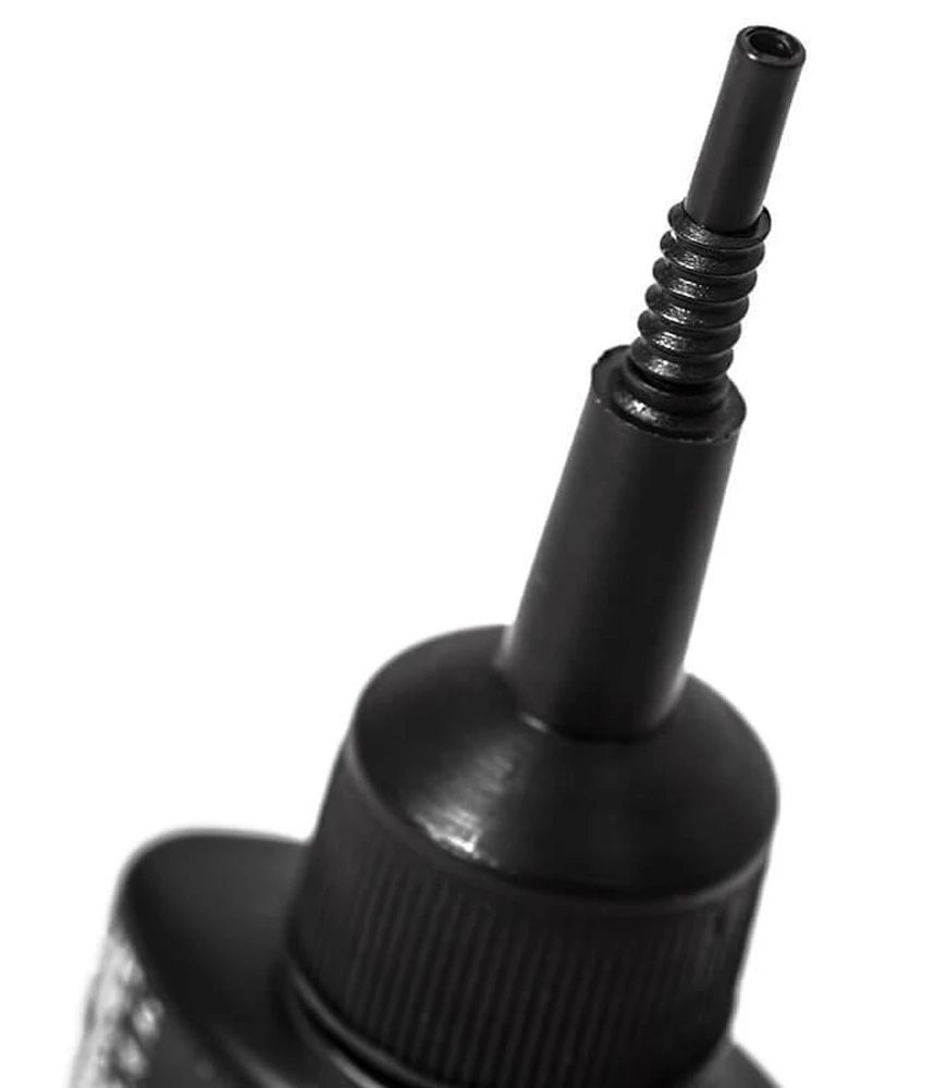 - Secouez vigoureusement la bouteille et appliquez le lubrifiant en veillant à ce que chaque partie de la chaîne soit traitée
