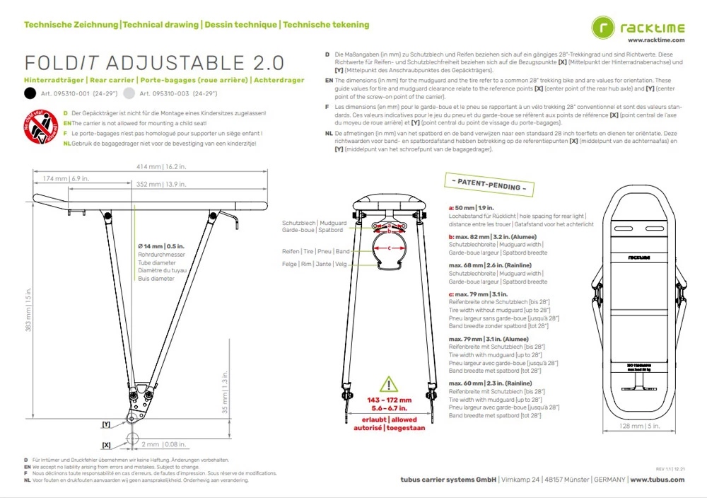 Caractéristiques du produit – Porte-bagages Racktime Foldit Adj.2.0