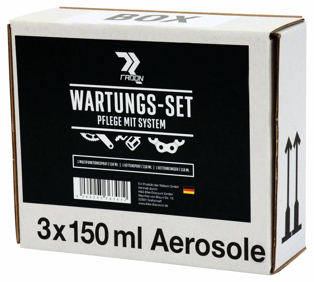 Le kit d’entretien RADON est le programme d’entretien idéal pour les pièces mobiles de la roue. Le nettoyage, la lubrification et l’entretien se font de manière fiable et simple grâce à cet ensemble de 3 pièces.