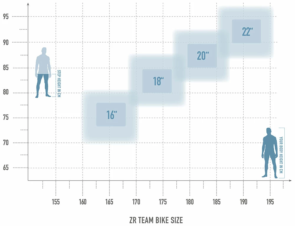 For this we have put together the best in equipment, which is possible in this segment. The complete SRAM SX Eagle 12-speed group shifts reliably at all times and allows with its wide gear range even the smooth pedaling on steep climbs, but does not miss any ratios on the flat and downhill. For comfort off-road provides the Rock Shox Judy TK suspension fork at the front with its 100mm travel, for long climbs you can lock the fork comfortably from the handlebars. At real speed in the downhill, the solid Shimano BR-MT200 disc brake brings you quickly back to a halt and gives you a lot of security. This also contributes to the LEVELNINE cockpit with the pleasantly wide riser, which gives you a lot of control and flatters the hands. Fast rolling Schwalbe Smart Sam tires complete the successful package and give you a lot of propulsion, but also allow trips off-road. In addition, you have in the medium frame sizes 18 “and 20 “the size split – choice between agile 27.5 “and over-rolling 29 “wheels. ZR TEAM 6.0 – THE bike for the entry and ascent!