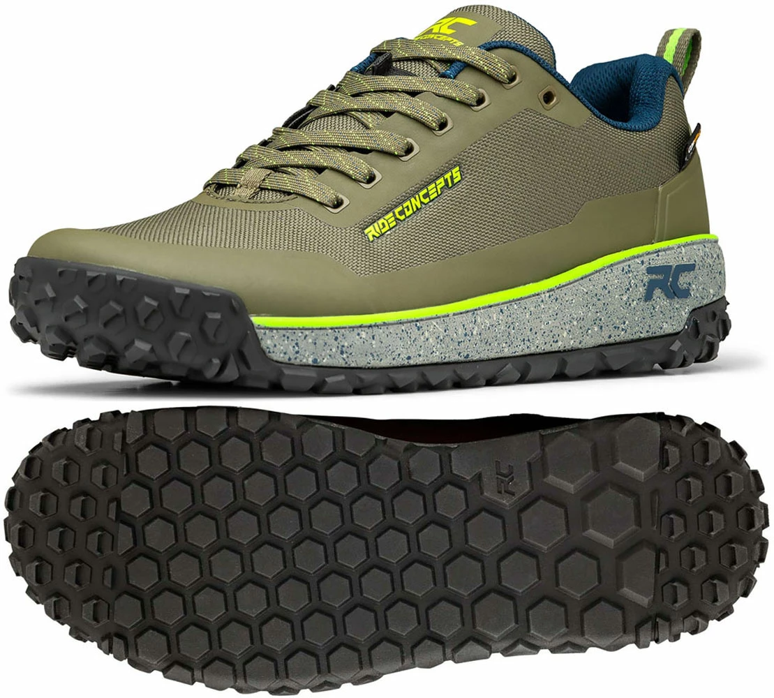 The new adaptive outsole has a supportive pedal contact surface with our MAX GRIP rubber for a secure connection with the pedal when the trail is in front of you. The compliant inverted hex sole in the toe and heel area makes it easier when hiking becomes necessary.
