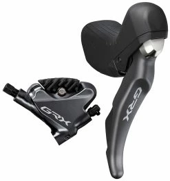 Toutes les unités STI se caractérisent par un axe de rotation du levier de frein surélevé de 18 mm, une forme de levier incurvée et des textures antidérapantes sur les surfaces de contact, qui assurent une adhérence optimale même sur les terrains les plus difficiles. La gamme STI de la famille GRX est complétée par les STI 1×11 RX800 et RX600 pour gauchers sans fonction de changement de vitesse ou DSP, y compris la version 1×11 Di2 (ST-RX815), dont les trois interrupteurs (deux sur le côté et un sur le dessus de la corne) peuvent être utilisés pour commander des appareils tiers tels que des lumières ou des ordinateurs compatibles.