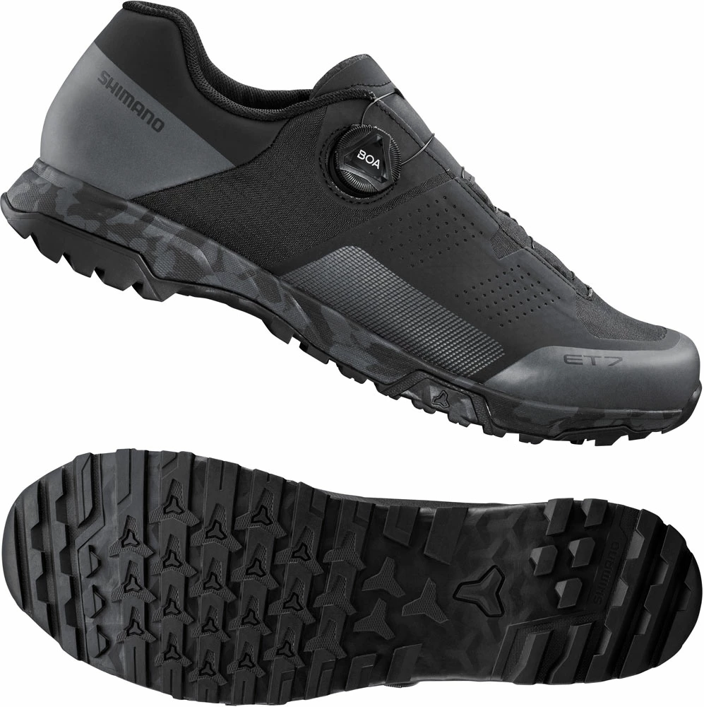 The SH-ET700 is an e-bike shoe with excellent walking comfort and suitable for any weather conditions. The sole with “360° Traction” block tread offers grip on different pedals and surfaces, which makes it also suitable for trekking.