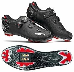 Light and super stiff full carbon sole with Sole Replacement System to maximise the life of the DRAKO. Thanks to exchangeable plastic tread inserts in the toe, metatarsal and heel areas, the SRS CARBON-GROUND guarantees first-class power transmission with outstanding performance in pushing and carrying passages. A replaceable nylon plate to hold the pedal cleats offers protection against damage to the carbon surface. Features exchangeable thread inserts in the cleat area as well as threaded inserts for optional cleats. Compatible with all common MTB pedal systems.
