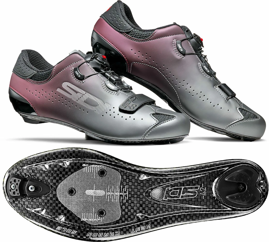 Parmi les points forts de la nouvelle SIXTY, citons la toute dernière technologie Sidi appliquée au mécanisme de fermeture, qui s’inspire d’autres modèles haut de gamme comme le Shot et le Wire 2 Carbon. Cette version est encore plus légère et plus avancée. La semelle en carbone est légère et résistante, de manière à transmettre toute la puissance au coup de pédale. Sidi a fait breveter son système pour maximiser le flux d’air vers le pied. Sans oublier le design simple et minimal qui rend cette chaussure encore plus aérodynamique, moderne et élégante.