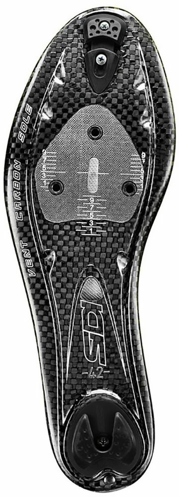 Semelle légère et super rigide en carbone pour une transmission maximale de la puissance. Avec entrée d’air et canal de ventilation intégrés et refermables pour une ventilation idéale du pied, même à des températures élevées. Flexibilité minimale dans la zone de l’avant-pied pour soulager les tendons et lutter de manière fiable contre les troubles circulatoires. Avec talon en plastique interchangeable et échelle d’alignement pour un positionnement optimal des plaques de pédales. Compatible avec tous les systèmes de pédales courants des vélos de route.