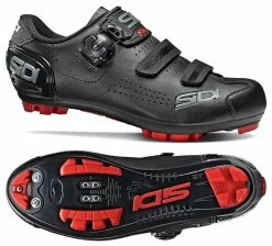 Carbon fiber-reinforced nylon sole with grippy plastic inserts and rubberized SIDI logo in the midsole area, for optimum traction in running passages and more safety when entering the pedal. Exchangeable thread inserts in the cleat area, additional inserts for optional studs. Compatible with all standard MTB pedal systems. Interchangeable profile insert in the toe area.