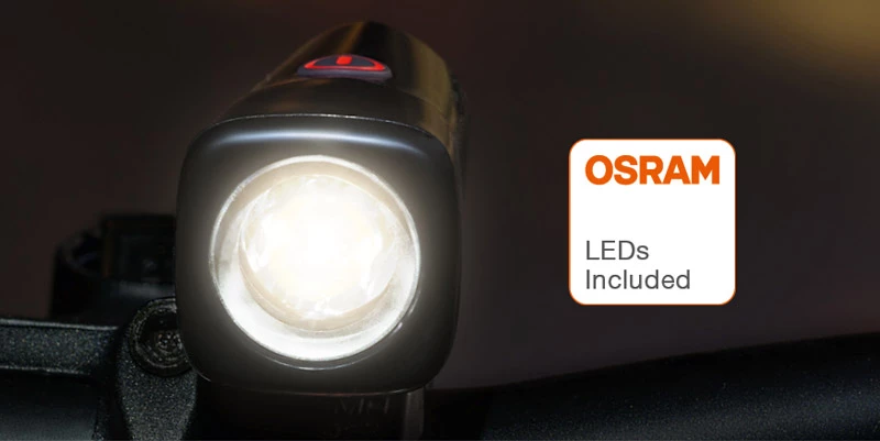 - Cinq modes d’éclairage différents préréglés assurent la flexibilité de l’intensité lumineuse (High : ≤ 150 lumens, Mid : ≤ 75 lumens, Low : ≤ 35 lumens, Night Flashing ≤ 100/400 lumens, Day Flashing ≤ 40 lumens)