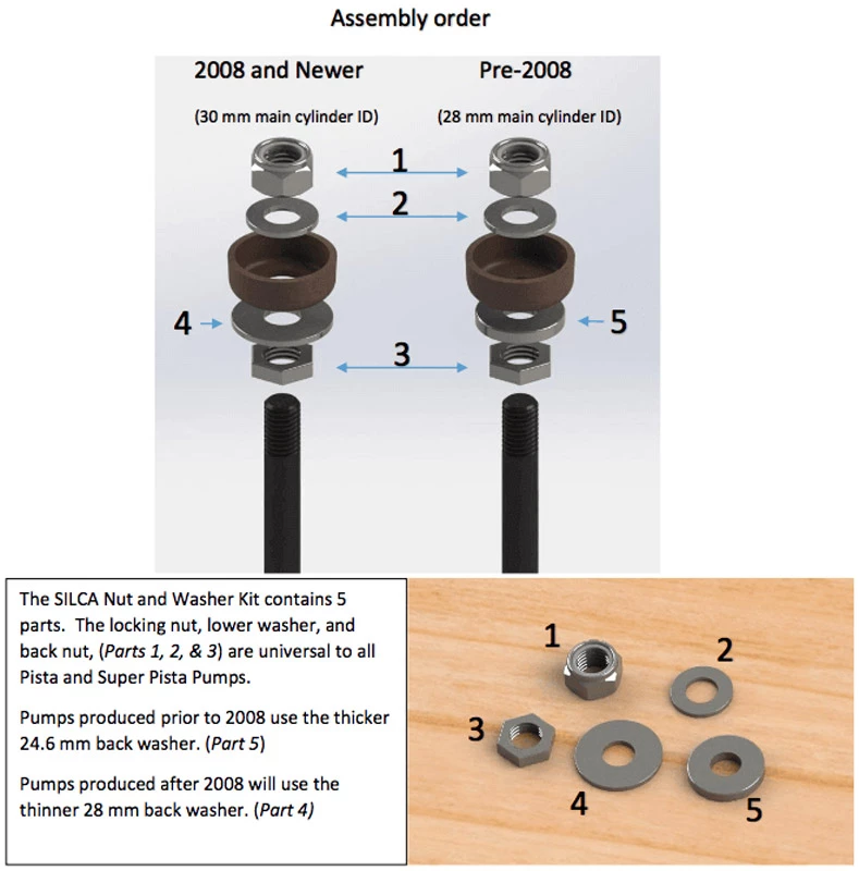 - Le kit contient 5 pièces : écrou de sécurité, rondelle inférieure et écrou arrière sont universels pour toutes les pompes PISTA et SUPERPISTA.