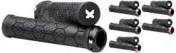 En même temps, la structure avec ses excellentes performances antidérapantes assure une adhérence exceptionnelle. L’anneau de serrage unilatéral à l’intérieur des grips et l’extrémité caoutchoutée du guidon assurent une adhérence et une protection maximales. La poignée est renforcée par le bouchon en polypropylène robuste, qui complète parfaitement le look avec le logo X blanc.