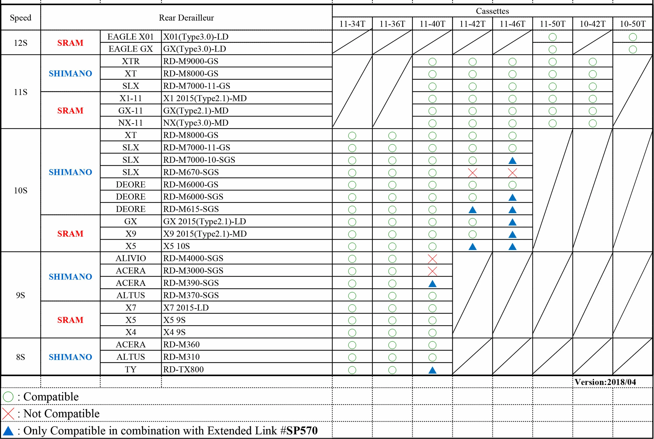 - 1 Sunrace SP570 Extended Link pour dérailleur arrière