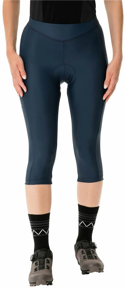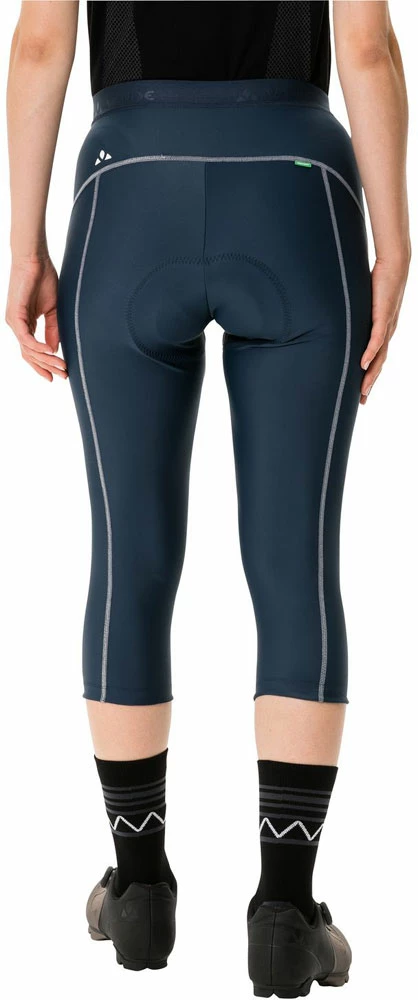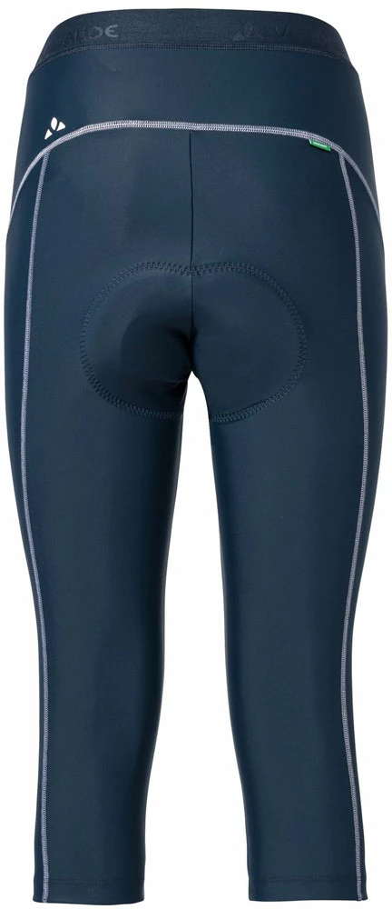 The seamless Advanced Cycling Green chamois guarantees a good fit and breathability. The foam padding has a combination of different densities for a high level of comfort in the saddle. The eco-friendly package comes in an ergonomic 6-panel design with flat seams and a flat waistband. So these pants not only offer maximum comfort on the tour, but are also planet friendly as well. The VAUDE Green Shape label stands for an environmentally-friendly, functional product made of sustainable materials.