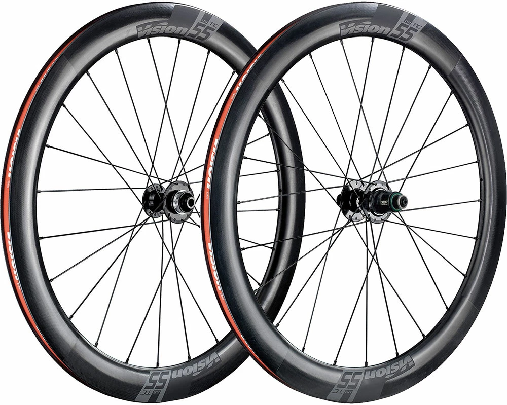 Développées lors de tests approfondis en soufflerie et sur route avec des cyclistes professionnels des équipes sponsorisées par Vision, elles offrent un superbe équilibre entre performance + légèreté à un prix compétitif. Les jantes entièrement en carbone sont compatibles TLR-Tubeless, tandis que la roue libre en aluminium est disponible aussi bien avec une roue libre Shimano 10-11 vitesses qu’avec une roue libre SRAM 12 vitesses XDR.