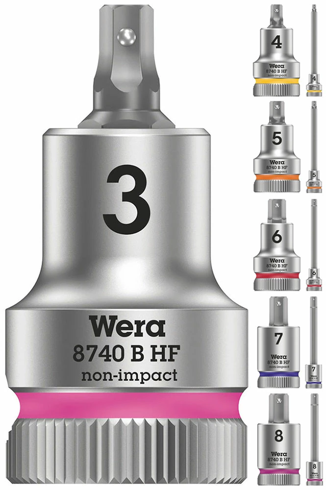 - 1 x Wera 8740 B HF Douille-embout Zyklop pour vis à six pans creux, à emmanchement 3/8″ avec fonction de retenue